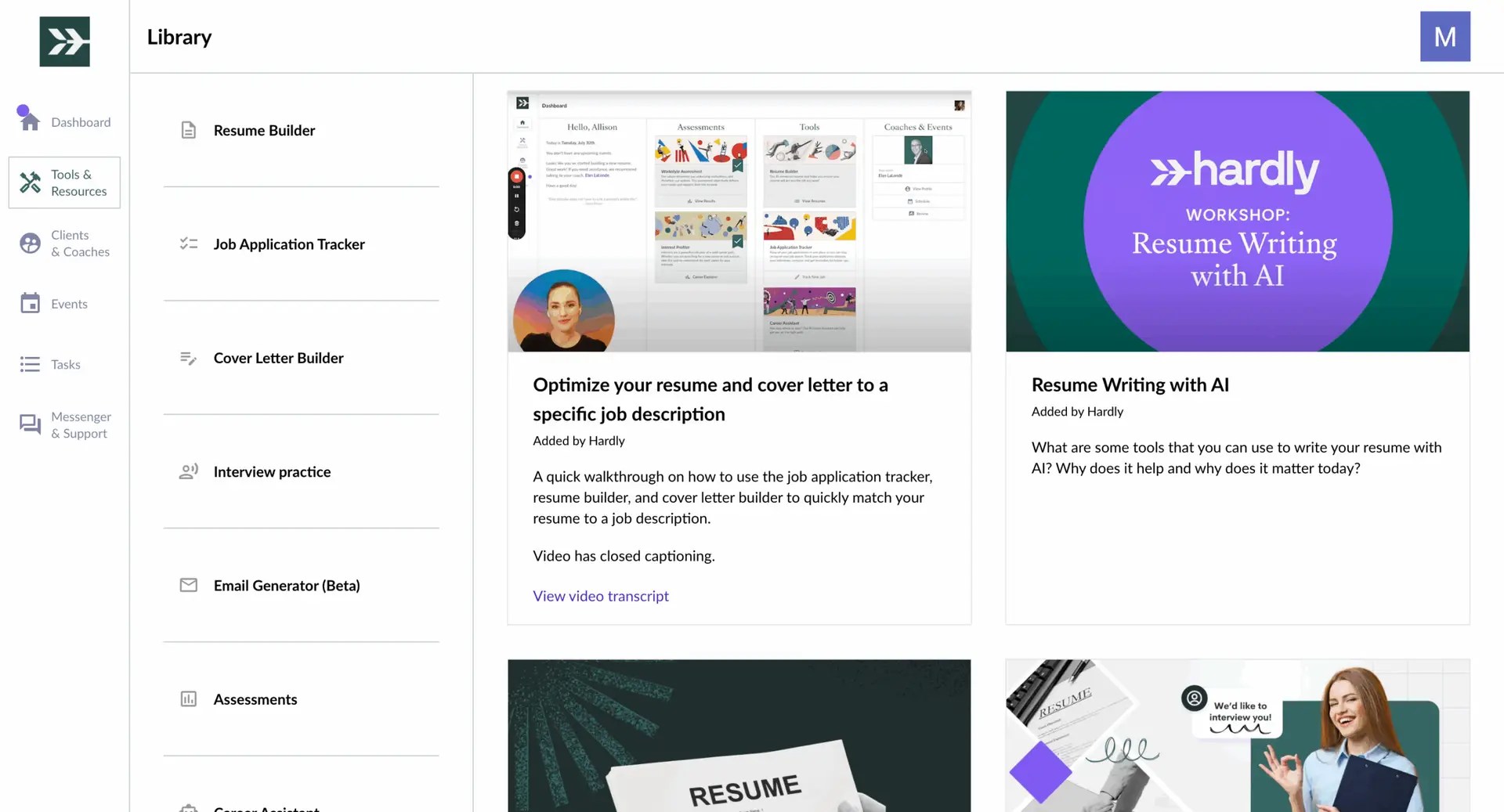 Upload or link to helpful articles, videos, and documents job seekers can explore anytime.